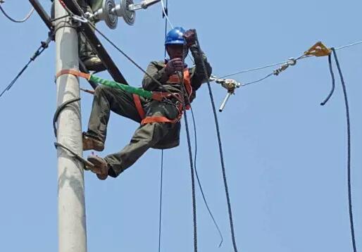 電力設施檢修電力工人攜帶鋁合金手扳葫蘆檢修作業...